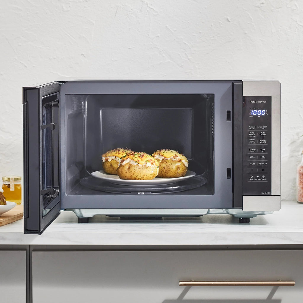 Panasonic 1.3 Cu Ft Countertop Microwave Oven with Glass Door, 1100W Power, Auto-Cook Menus, LED Display, Child Lock