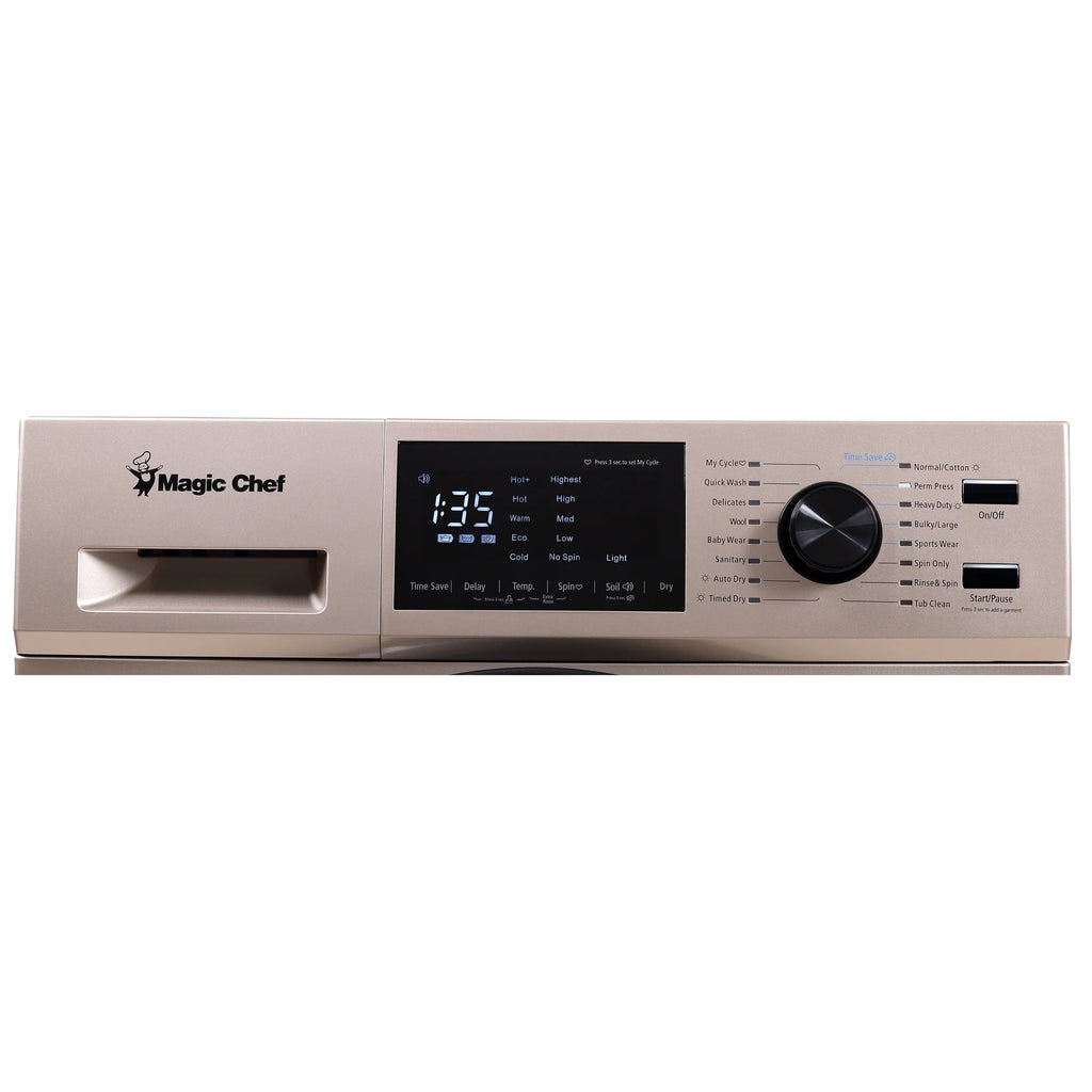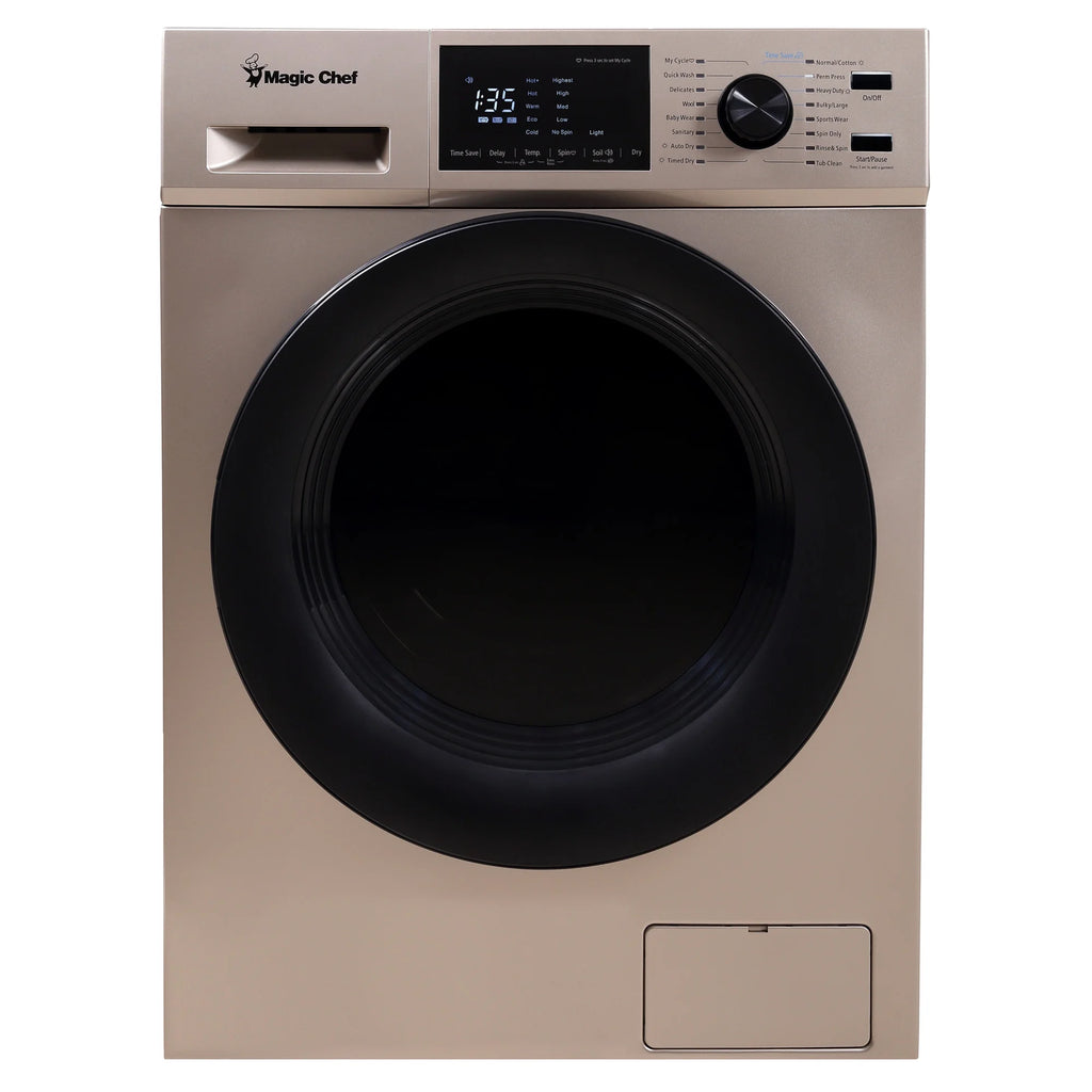 Magic Chef 2.7 Cu Ft 120 Volt Ventless All in One Washer Dryer Combo Gold Stainless Steel Drum 16 Wash Cycles LED Controls