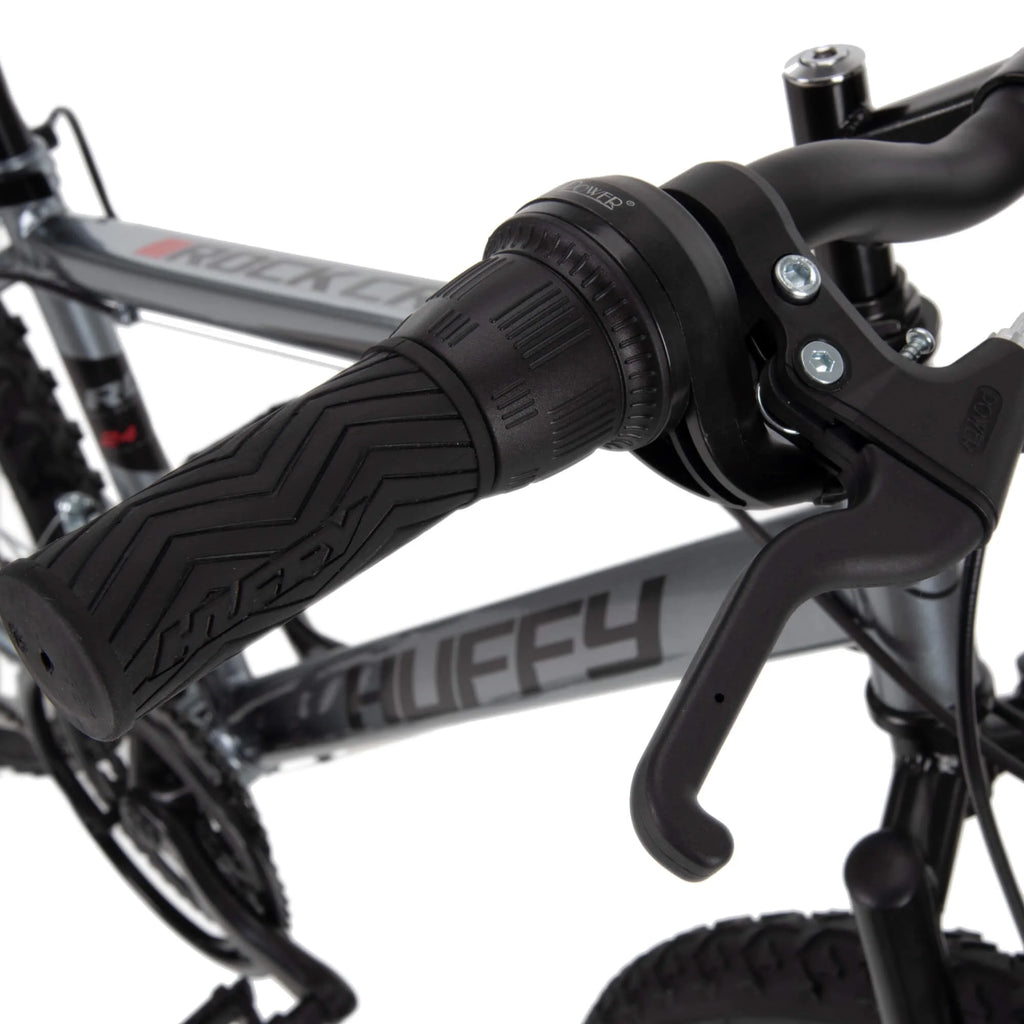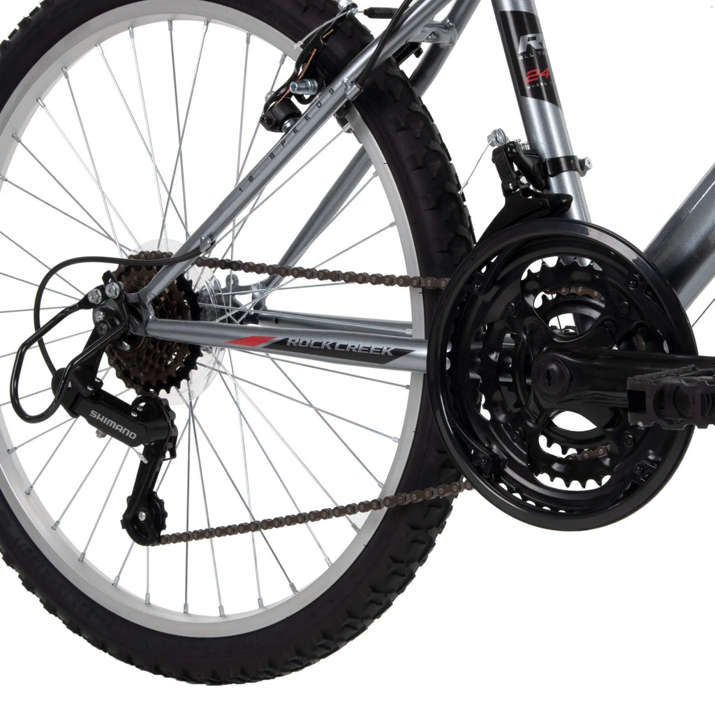 Huffy Rock Creek 24 Inch Mountain Bike Silver Gray with Shimano 18 Speed and Front Suspension