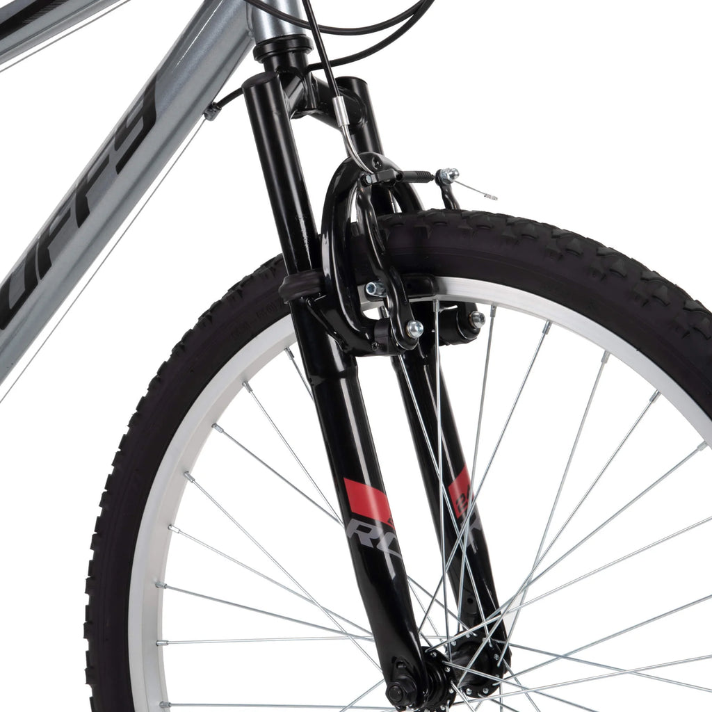 The Huffy 24 Inch Rock Creek Mountain Bike is engineered for riders seeking dependable performance across neighborhood paths, paved trails, and light off-road terrain. Designed for teens and adults between 4 feet 8 inches and 5 feet 8 inches tall, this silver hardtail mountain bike pairs durable construction with smooth multi-speed riding. The sturdy steel frame provides lasting strength, while the front suspension fork improves control and comfort when riding over bumps, potholes, and uneven ground.