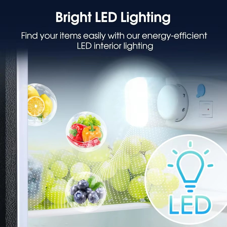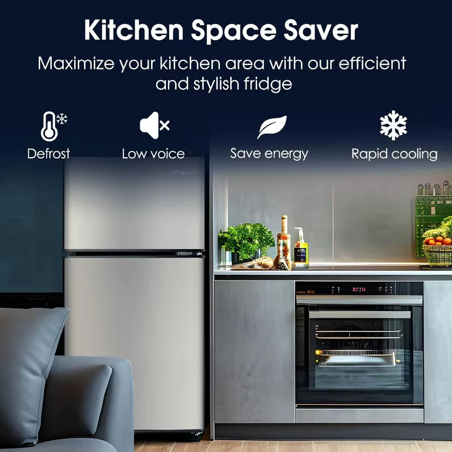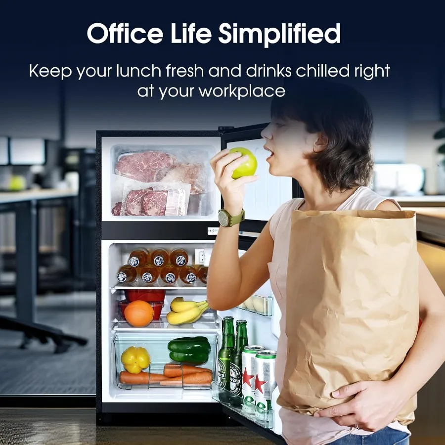 3.2 Cu.Ft Double Door Fridge with Freezer for Bedroom Office Dorm and Apartment Portable Refrigerator with 7 Temperature Settin