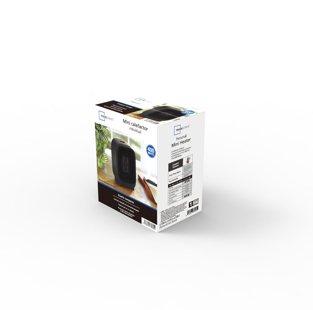 Mainstays 400W Portable Electric Space Heater for Indoor Use with Energy Efficient PTC Ceramic Heating Safety Shut Off and Quiet Operation in Black