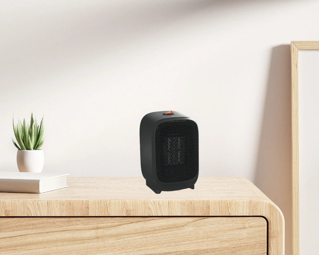 The Mainstays 400W Portable Electric Space Heater provides compact and efficient warmth for small indoor spaces. Using advanced PTC ceramic heating technology, it quickly converts cold air into comfortable heat, making it well suited for bedrooms, offices, and personal workspaces. Its sleek black design blends easily with modern decor and its lightweight build allows effortless relocation wherever warmth is needed.