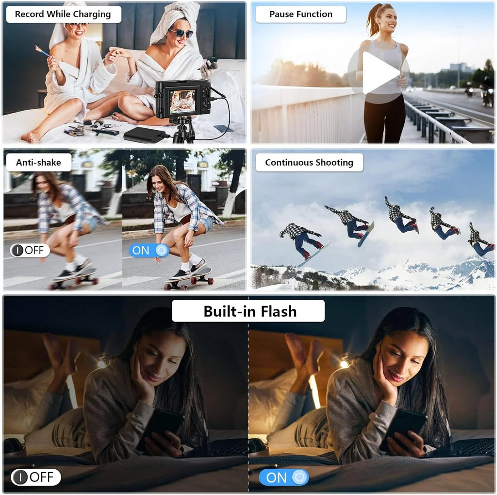 Included is a 32GB SD card that provides ready-to-use storage, and the camera supports recording while charging, ensuring uninterrupted workflow. Lightweight and portable, it fits into a backpack or purse and follows creators on-the-go. HDMI output allows easy transfer of footage, while the autofocus system simplifies capturing sharp images across scenes. Ideal for YouTube content, beginner filmmakers, and anyone documenting life’s moments.