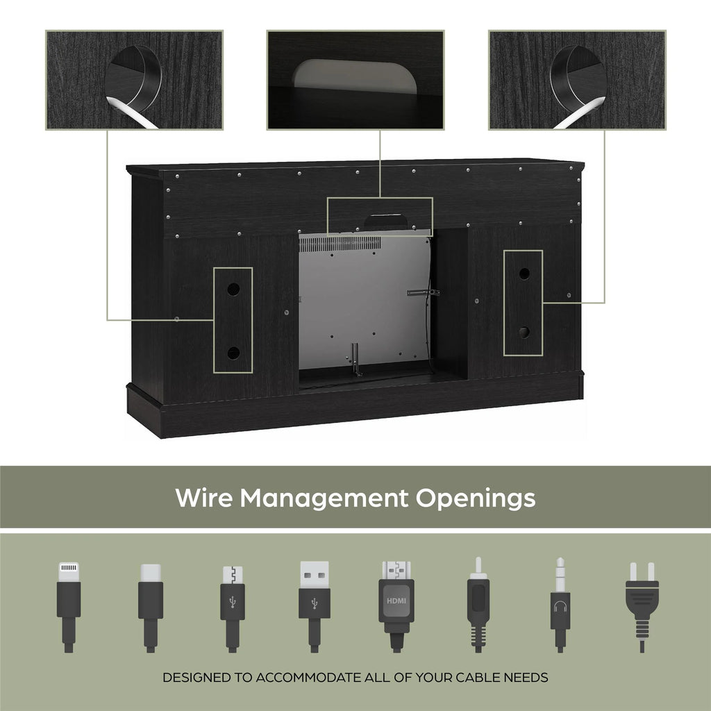 Ameriwood Home Ashton Lane Electric Fireplace TV Stand with Remote for TVs up to 65″ Black Oak