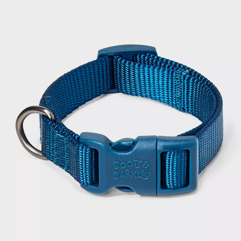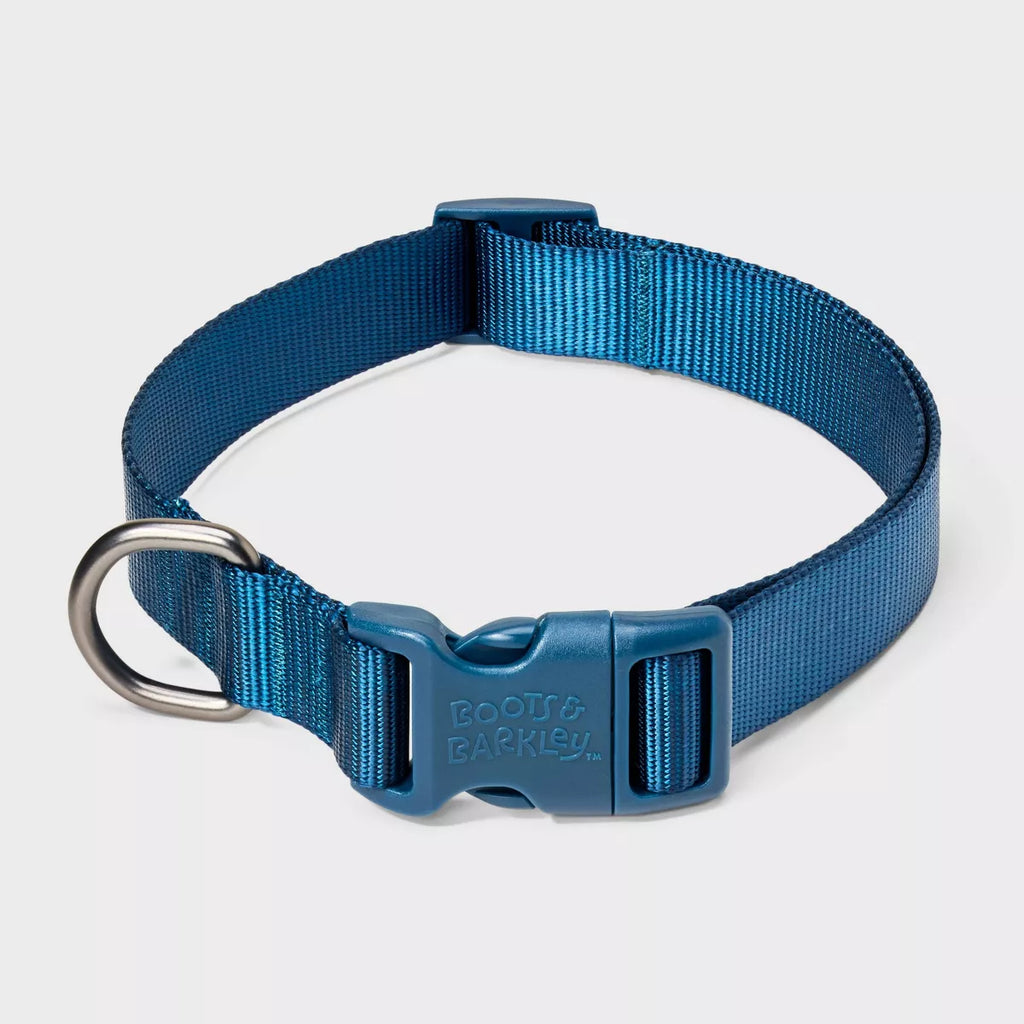 Whether going to the park or hiking with your furry friend, this Basic Adjustable Dog Collar with Matching Buckle from Boots & Barkley is the perfect addition to your pet's accessories collection. Featuring reinforced stitching for extra stability, this collar includes a matching buckle for easy on and off, and the adjustable design provides a customizable fit suitable for dogs of all ages. Durable, comfortable, and designed for everyday wear, it’s a simple essential for walks, playtime, and adventures.