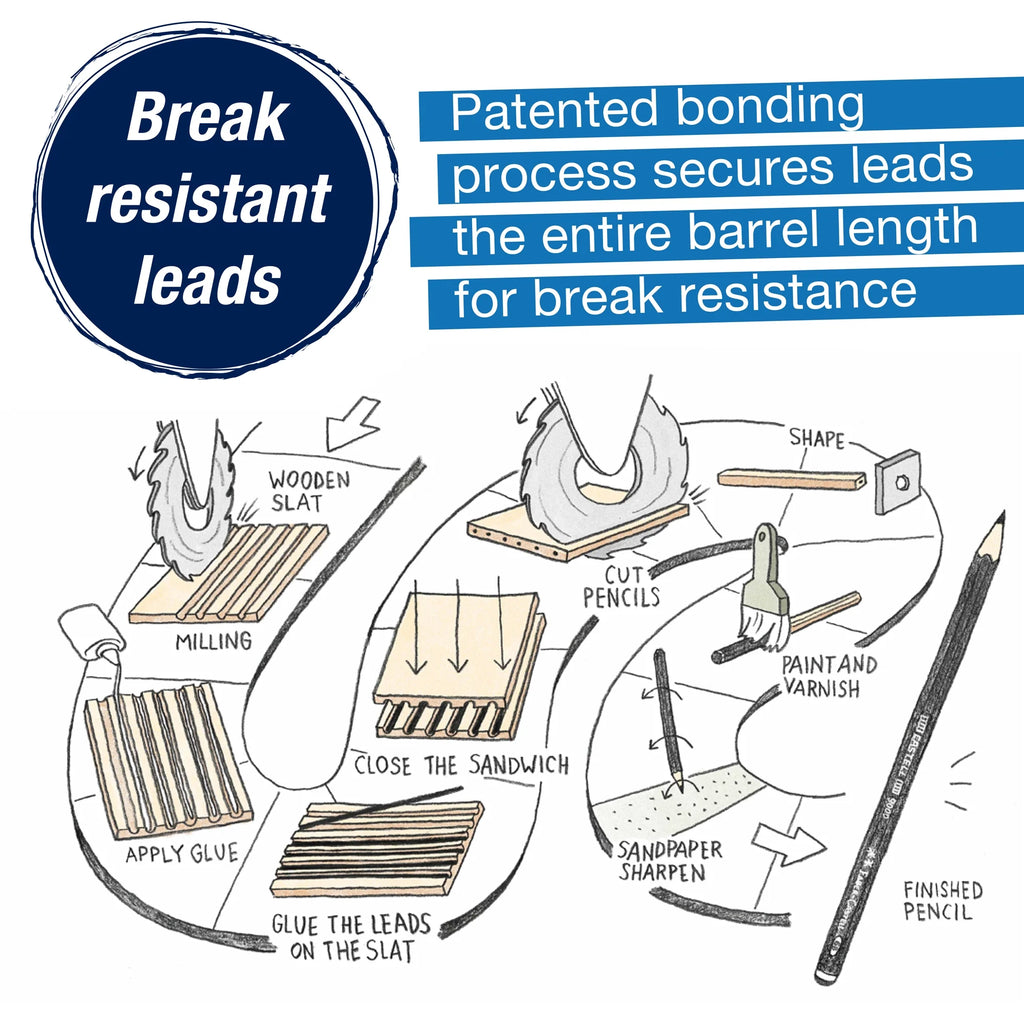 - Break-resistant bonded lead ensures durability and clean sharpening