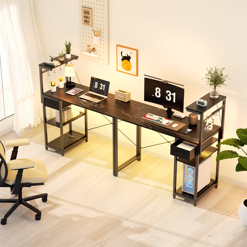 Reversible Desk: This computer desk features a reversible design, allowing you to install the storage shelves and monitor stand on the left or right according to your needs. Perfectly fit any corner area.