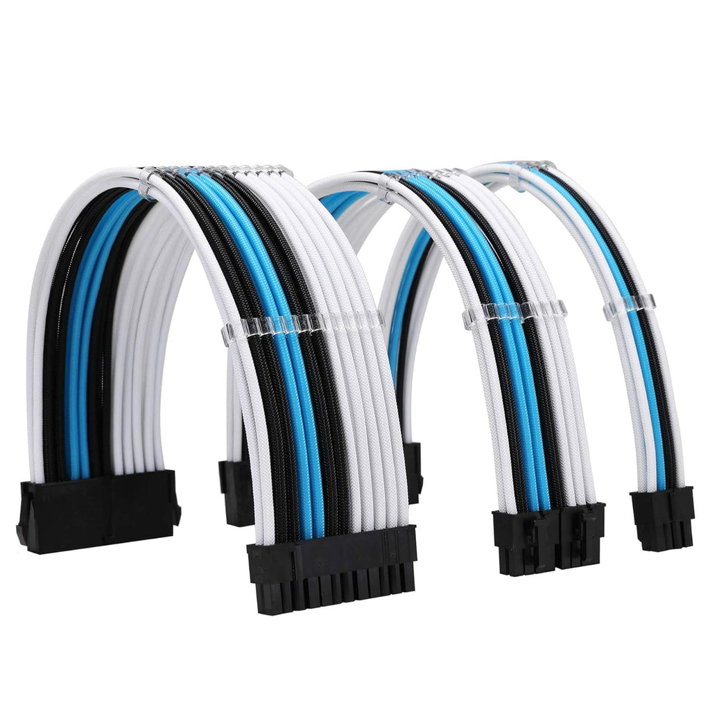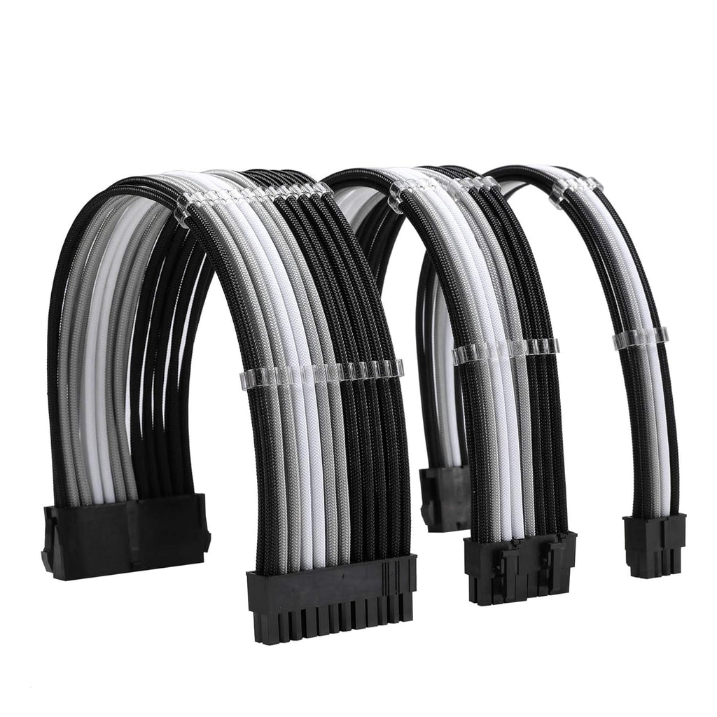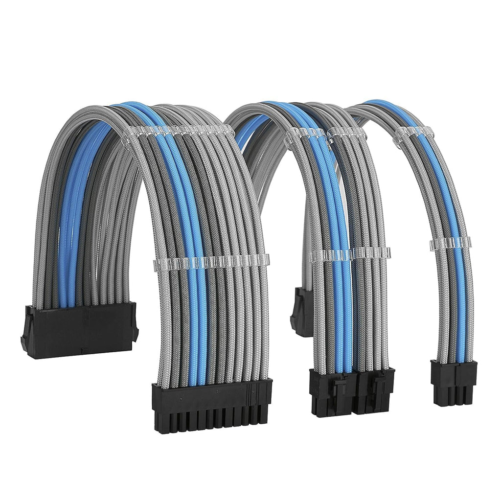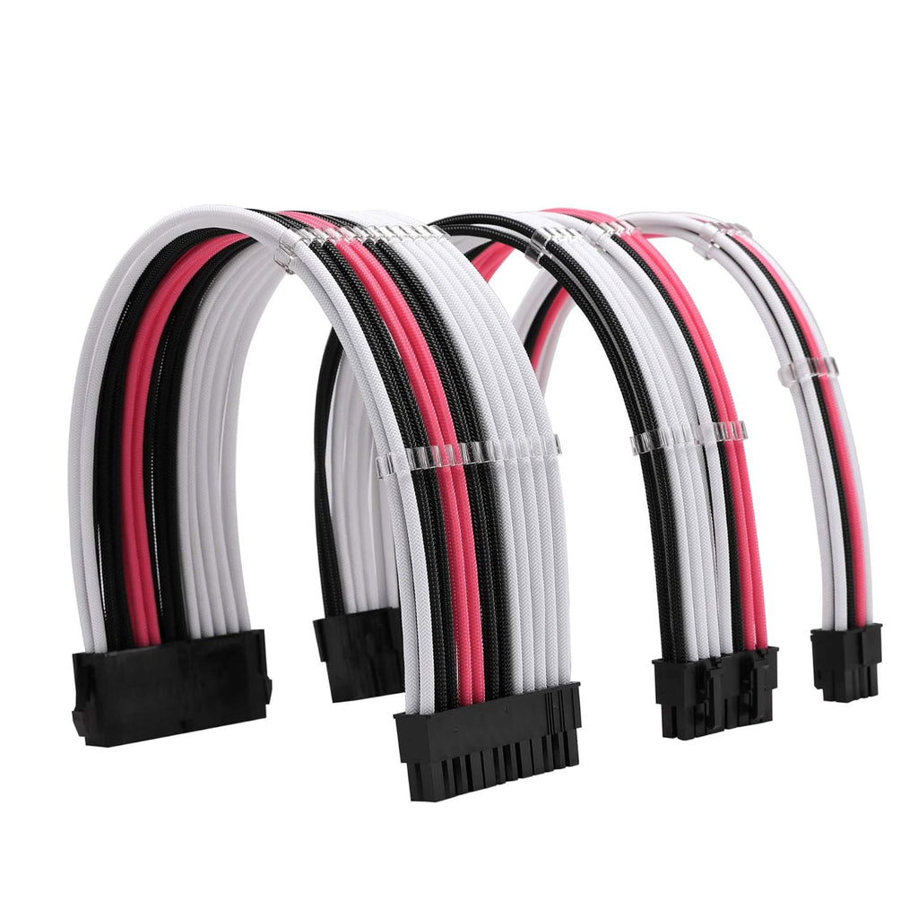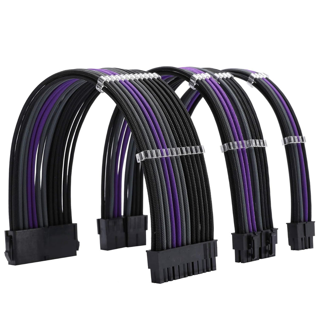 The Formulamod FM-NCK3 Sleeved Cable Extension Kit enhances PC builds with durable 18AWG wires wrapped in high-density protective sleeving for improved styling and reliable power delivery. This set includes extensions for the 24-pin ATX motherboard connector, 4+4-pin EPS CPU connector, and dual 8-pin PCIe GPU connectors. The pre-bend cable design helps maintain clean routing angles, even in tight cases or behind motherboard trays, while included cable combs keep layouts organized and airflow unobstructed. Compatible with all standard ATX power supplies, these extensions work in combination with your existing PSU cables. Connector buckle orientation varies by motherboard and GPU model, so verify alignment before installation.