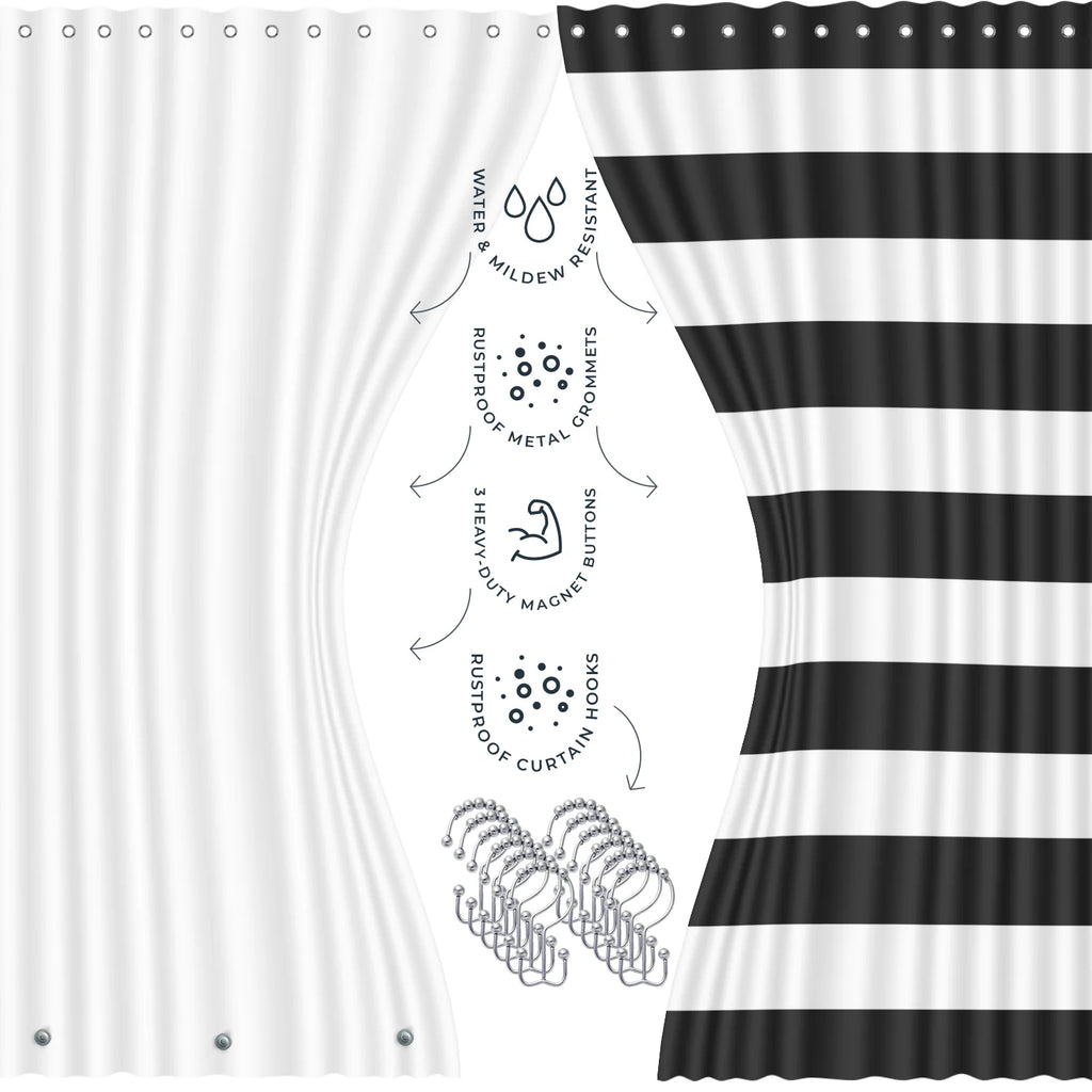 - Our bathroom shower curtain sets include a clear liner with weighted magnets at the bottom to keep it in place.