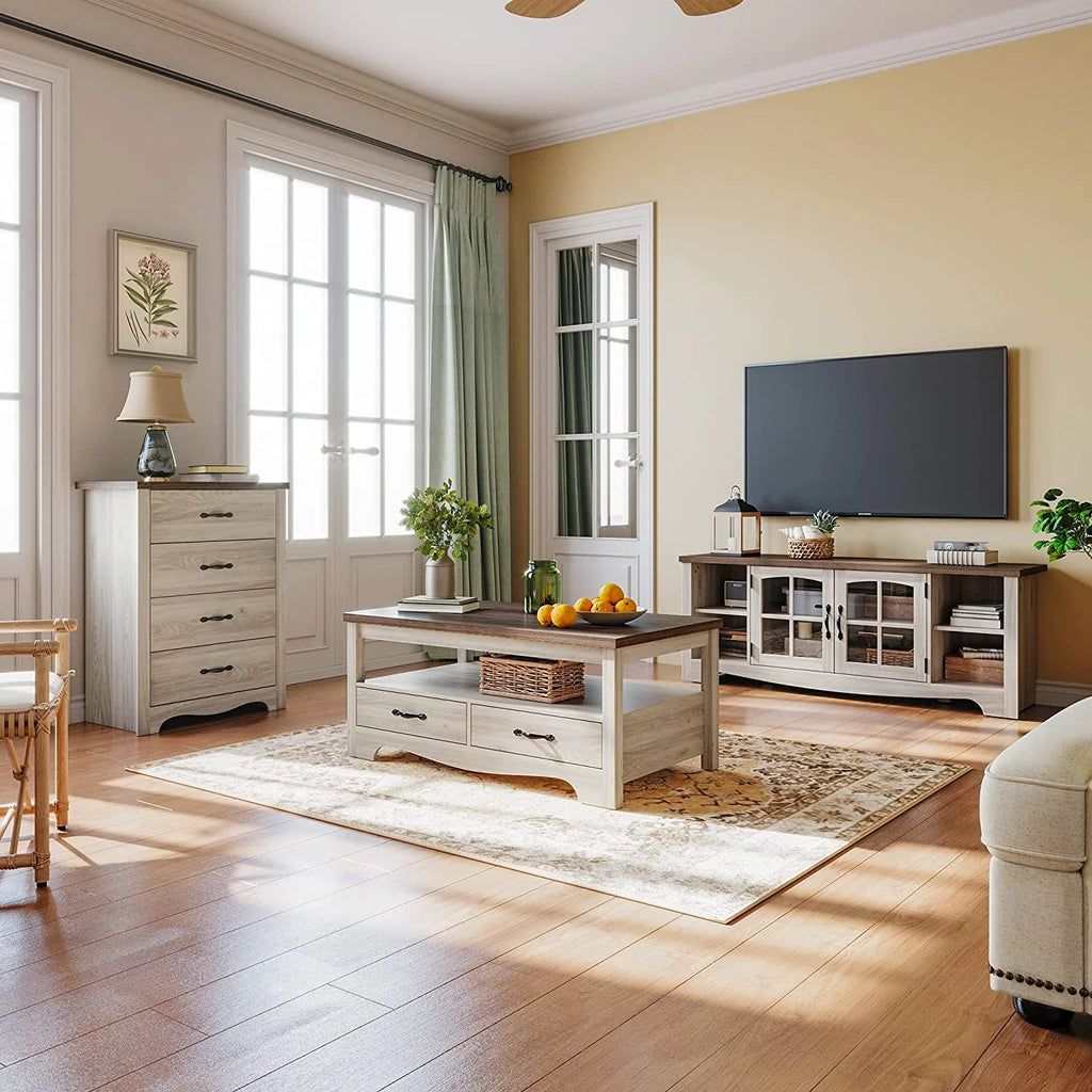 Item Type:LINSY HOME Farmhouse Coffee Table with Storage, Wood Coffee Table for Living Room