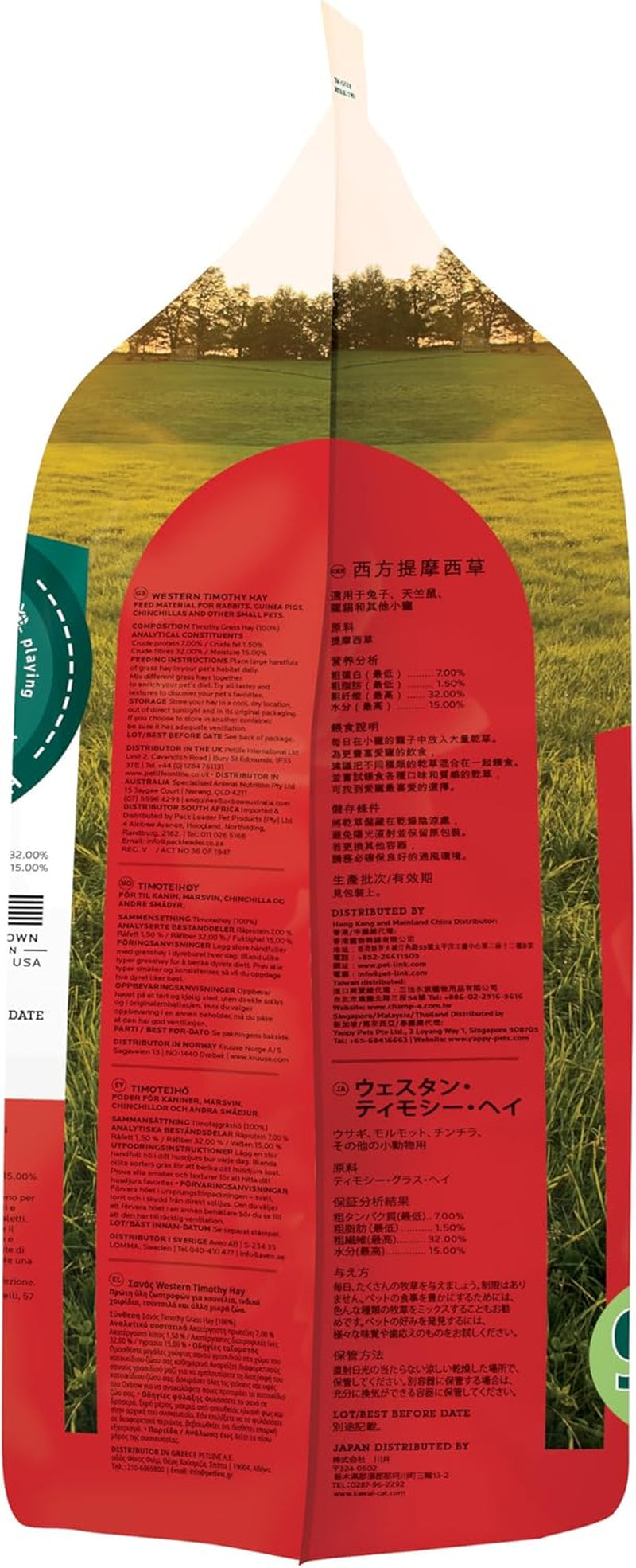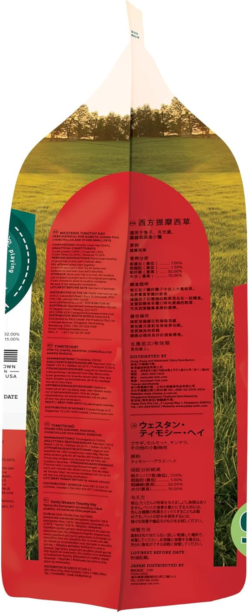 Oxbow Western Timothy Hay Premium All-Natural High-Fiber Grass Hay for Rabbits Guinea Pigs Chinchillas Small Pets USA Grown Hand-Sorted Veterinarian Recommended Digestive and Dental Support (Multiple Sizes Available)