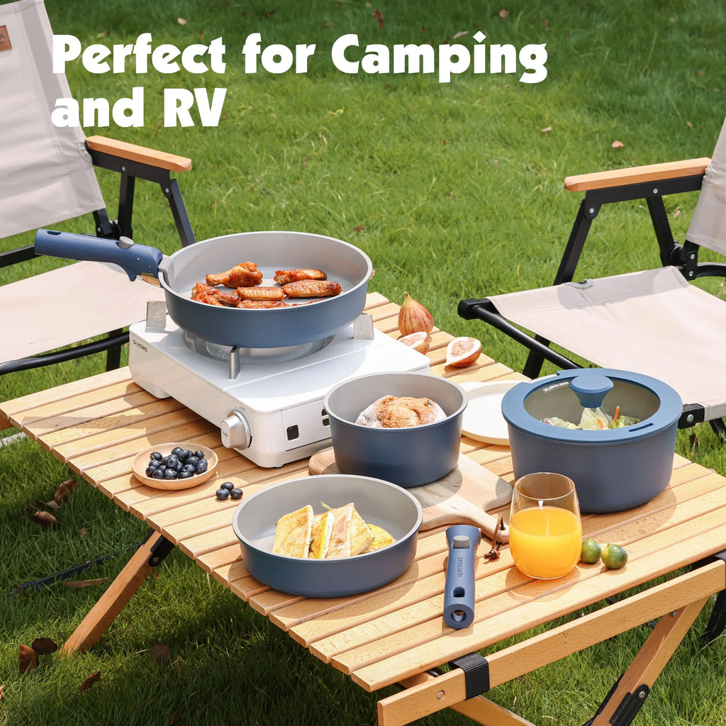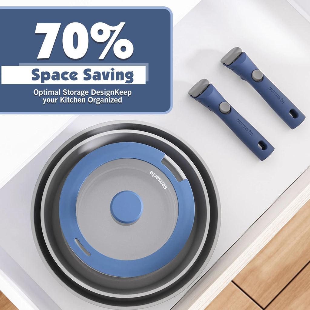 Why Sensarte? Sense+Art: More than a Cookware. Discover the SENSARTE difference through our advanced non-stick technology. Our cookware sets with removable handles guarantee a superior release of food, making cooking, serving, and storage a breeze. From delicate omelets to sizzling stir-fries, and baking desserts, our pans deliver consistent heat distribution for perfect results every time.