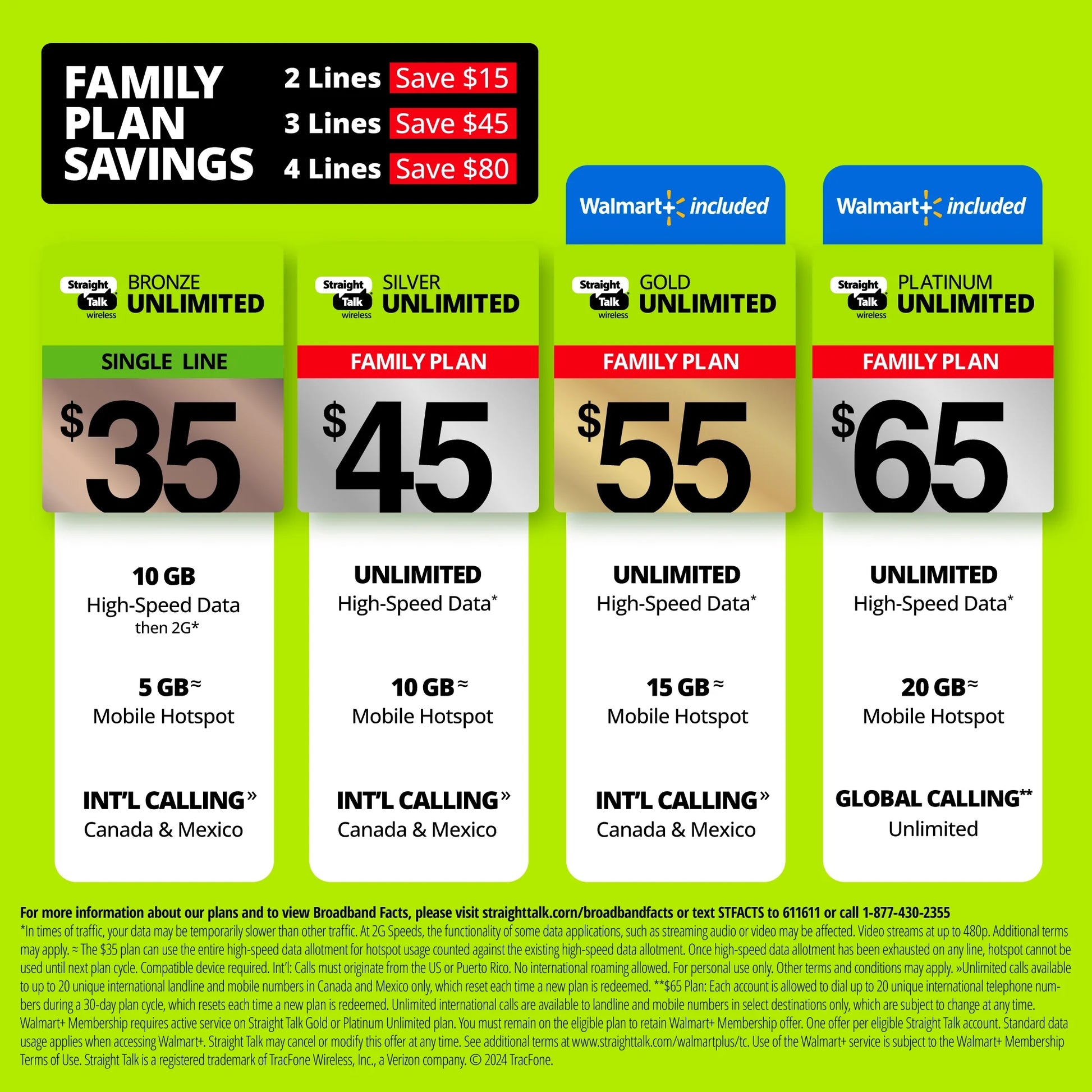 - Compatible with Straight Talk's no-contract family plans starting at only $25/line/month