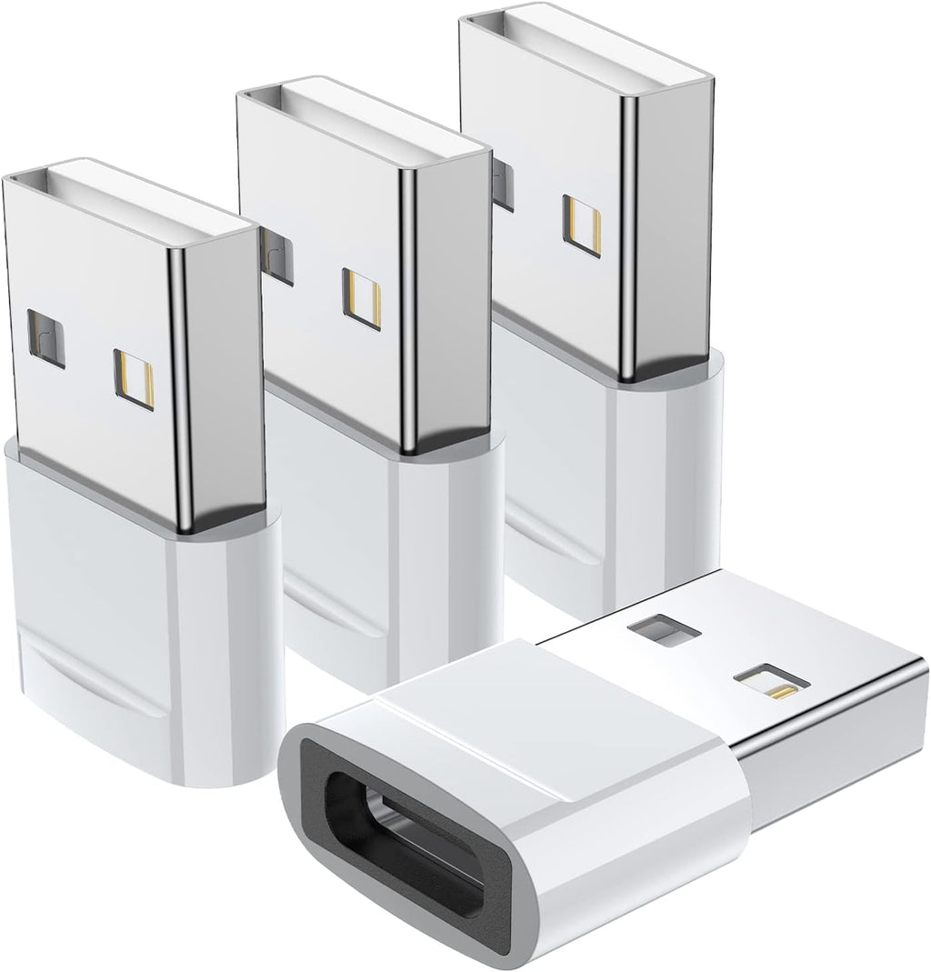 This 4-pack of QianLink USB-C Female to USB-A Male adapters transforms standard USB-A ports into USB-C connections for both charging and data transfer. Built with an aluminum-alloy housing and an internal 56 kΩ resistor for protection, these adapters support transfer speeds up to 480 Mbps and charging output of 3A. Designed for iPhones, iPads, Samsung Galaxy devices, Google Pixels and other USB-C peripherals, they are perfect for home, office or travel use. Note that these are USB 2.0 adapters and do not support video output, MagSafe compatibility or USB 3.x speeds.